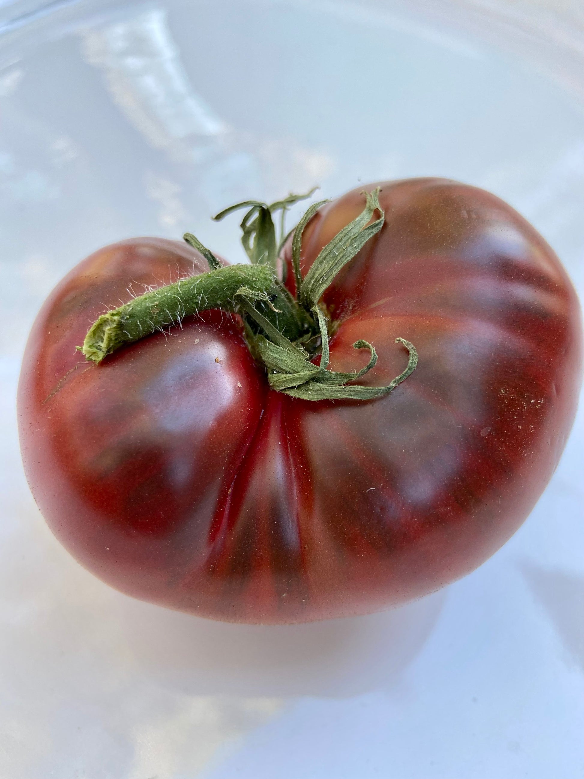 The Black from Tula Tomato is a rich, heirloom variety known for its bold, earthy flavor and striking, dark coloration. The medium to large-sized fruits weigh 8–12 ounces and are a deep reddish-brown with purple undertones. The flesh is dense and meaty, offering a sweet, smoky flavor with a hint of tang that makes it perfect for slicing, sandwiches, or roasting.